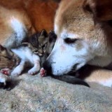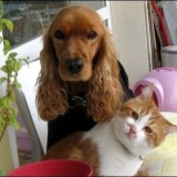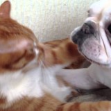 無邪気な猫とぼーっとする犬の対比がオモロい。