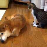 コロンコロン柴犬とバンザイ猫